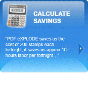 PDF-eXPLODE is an electronic document distribution tool that lets businesses send batches of personalized PDF documents to designated recipients with the click of the printer button. Functioning as a Windows printer, PDF-eXPLODE can integrate with your existing business software. It captures a complete report or a Word or mail merge document sent to the printer and converts it to a "master" PDF.